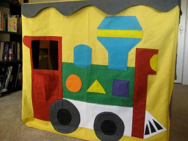 Creating this playhouse using a table cloth and felt paper will give your kiddos a very colorful playhouse.