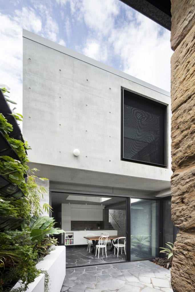 The weight-ed thermal mass of the materiality allows for delayed release and absorption of heating and cooling when needed, and the scattered gardens and green spaces allow for natural ventilation, additional sunlight and connection to the outdoor. There is an obvious contribution to the urban fabric of Balmain through the restoration works, and also in the respectful approach to the extension.