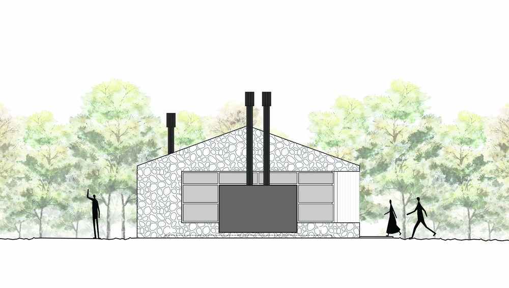 The concept of the project started from the idea of a cabin since the surroundings have an artificial lake of more than one thousand square meters of area. The cabin is only used for leisure and therefore does not have dorms. The project has a large leisure area that includes living spaces and TV, kitchen and diner facing large openings that connect to the outside, allowing a privileged view of all angles of the lake and mountains.