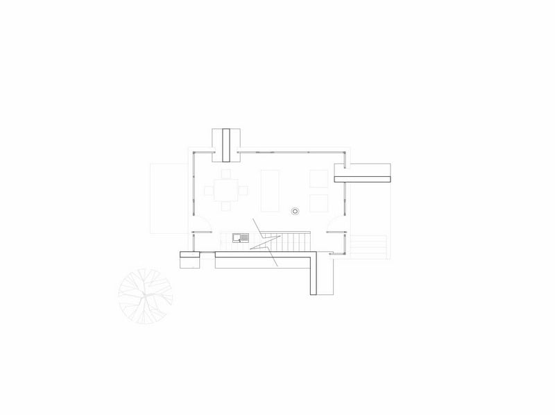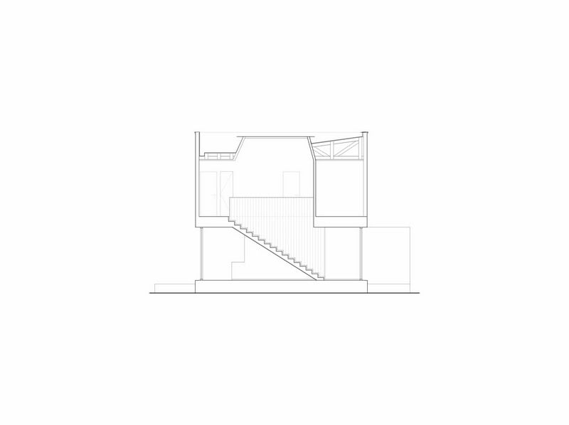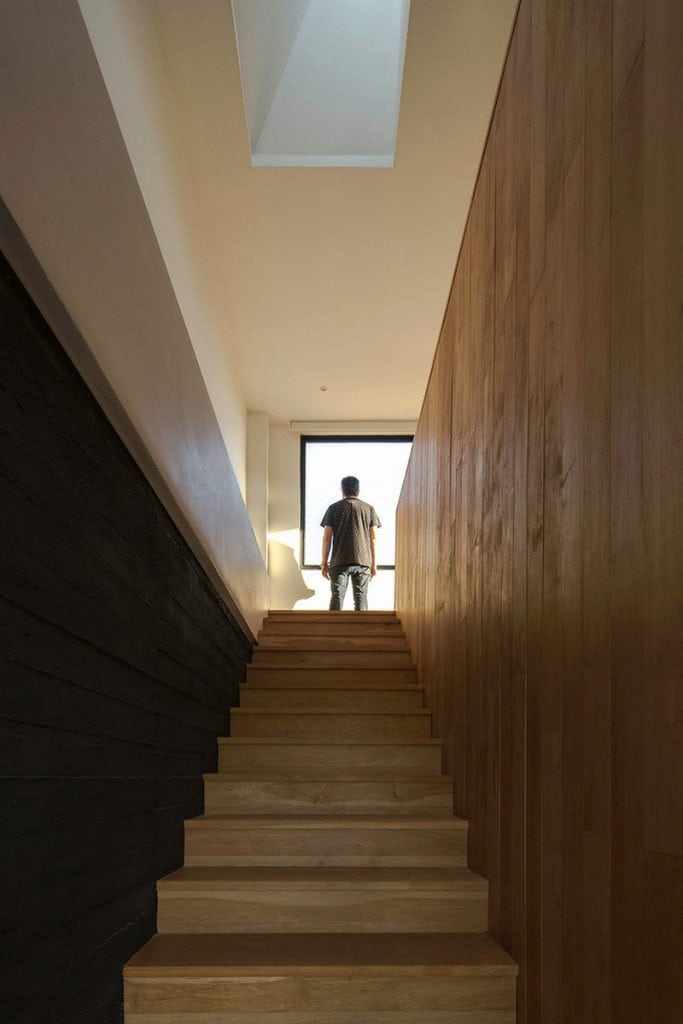Both bodies are vertically connected by the stairway, over which, and parallel to it, a skylight can be found; the last natural light entrance of the space.
