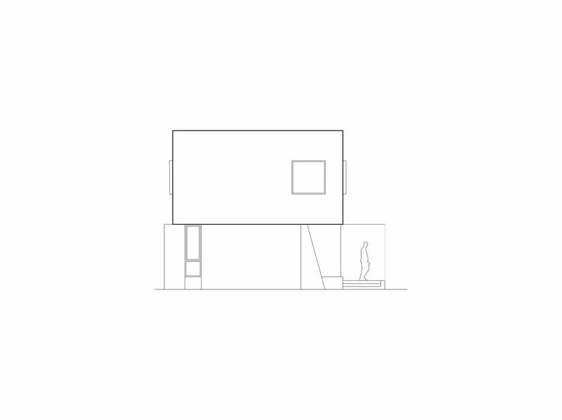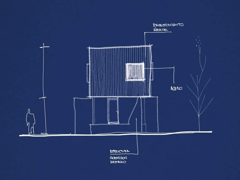 In contrast, an opaque single volume second floor, lined with 2×1 wood only connected to the outside by a window on each room, windows which become the evidence of the existence of their corresponding spaces on this floor.