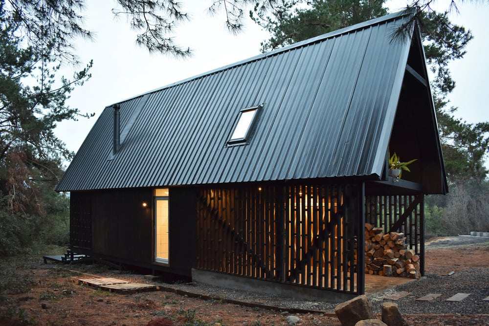 Casa R is a holiday refuge for extreme climates located halfway up the Andes mountain, specifically at the town of Vilches, VII Southern Region of Chile. The main nearby attractions are the Pehuenche Border Crossing Trail, the Maule Lagoon, the Colbún Lake and a series of nature reserves and national parks. The land is a pronounced ravine which limits, on the north with Corel River, and on the east with the mountains. Another virtue of the area is that the place does not have close neighbors, and the land has a series of trails for trekking and outdoor sports.