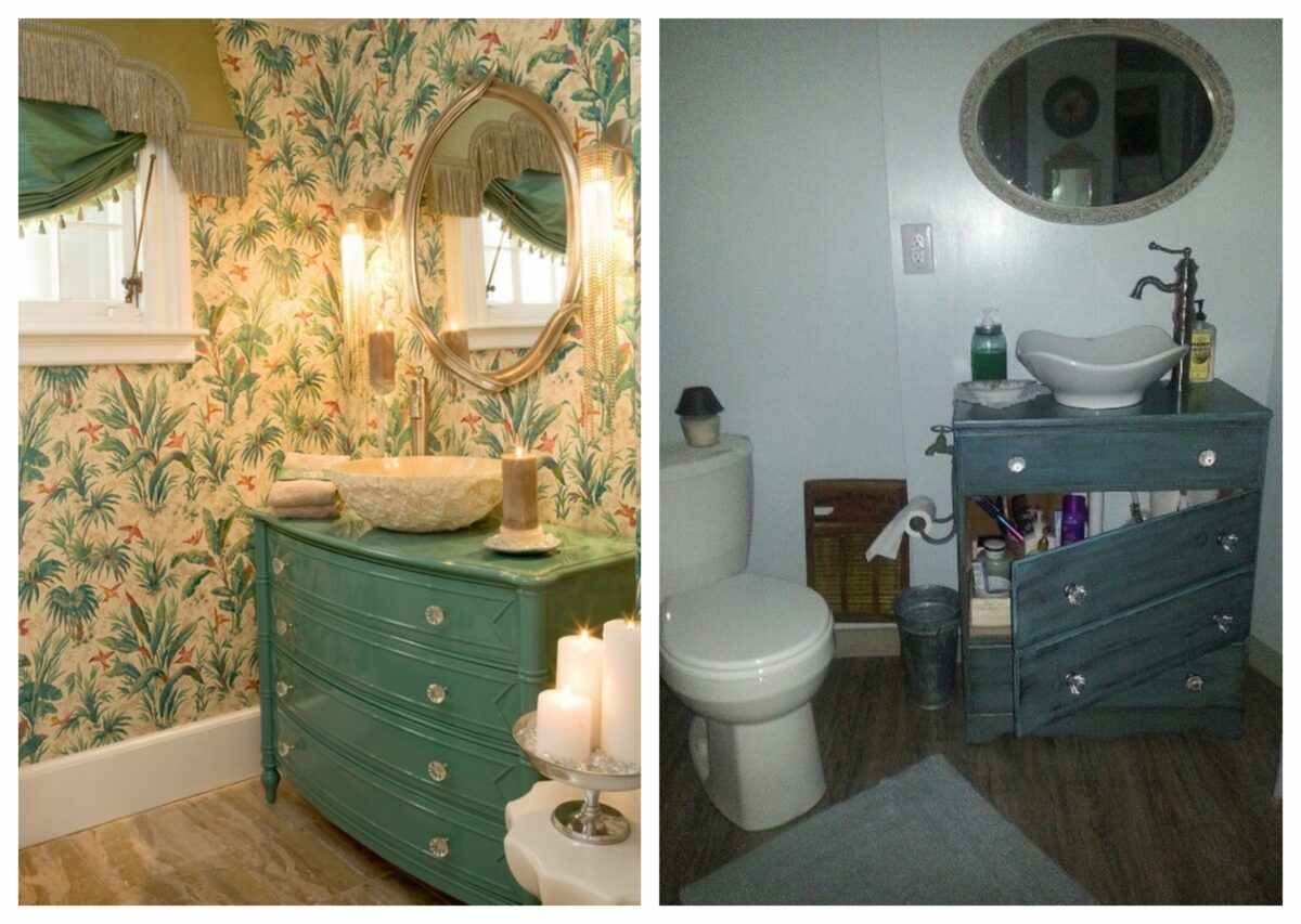 So, if you didn’t want to buy a new vanity, then take one of your existing old dressers and turned it into a vanity that has more storage than the original dresser.