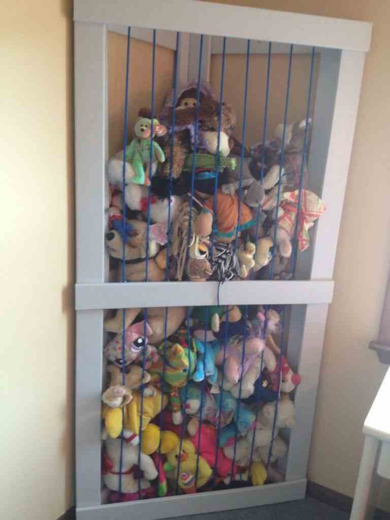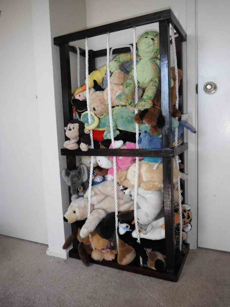 In most houses, floor space is at a premium so a storage system that will allow stuffed toys to be kept vertically makes lots of sense.
