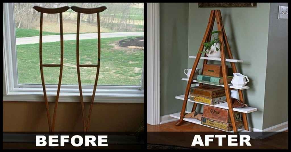 One of the best ways of reusing these tools is with a vintage crutches shelf.