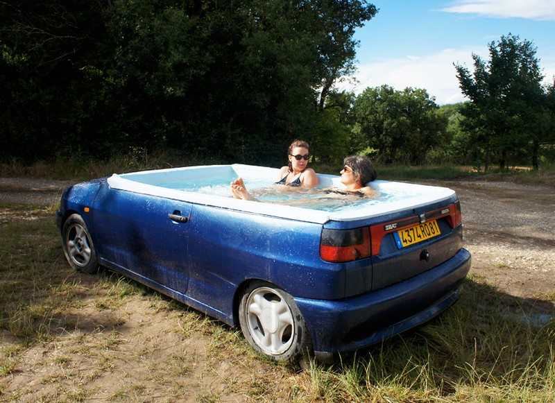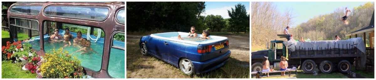These pools are made from old cars, buses, or even a truck. All you need to do is produce a good quality tarpaulin for the siding of the area intended for your pool and fill it with water.
