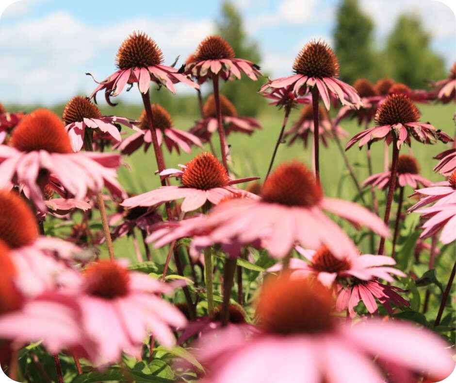 - Coneflower (Echinacea) – 2–4 ft tall; full sun; average to dry soil; very hardy and tough