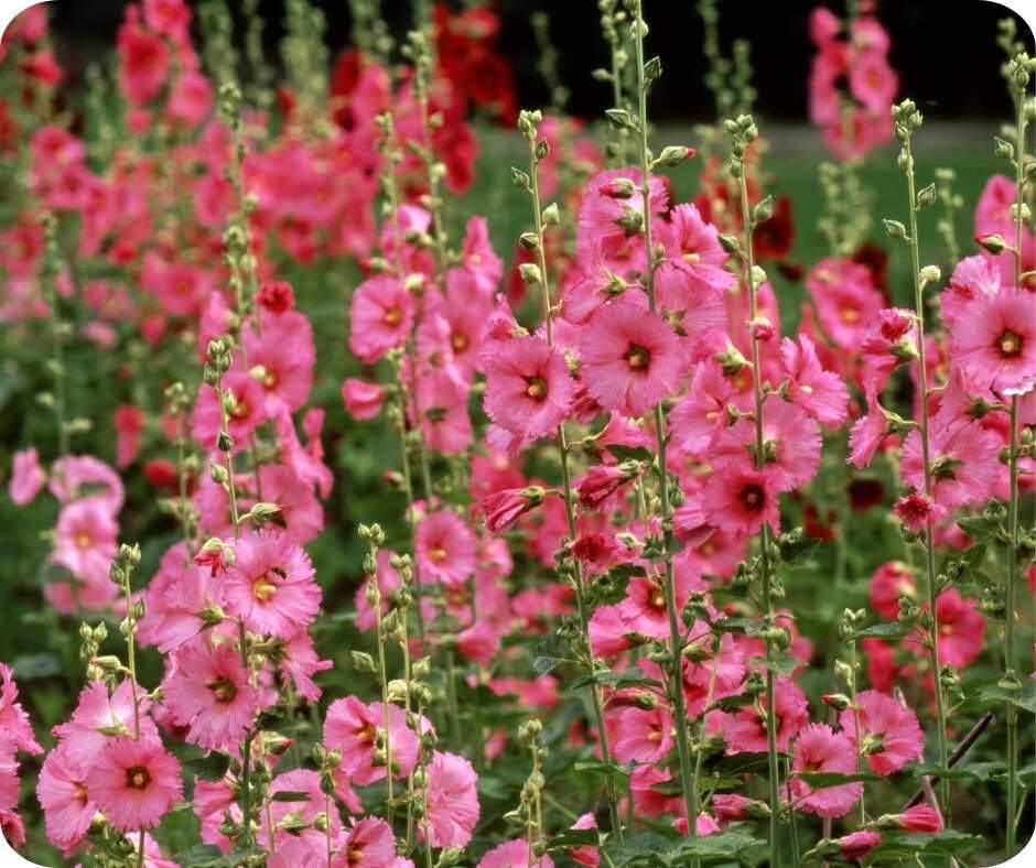 - Hollyhock – 5–8 ft tall; full sun; fertile, well-drained soil; sheltered from strong winds