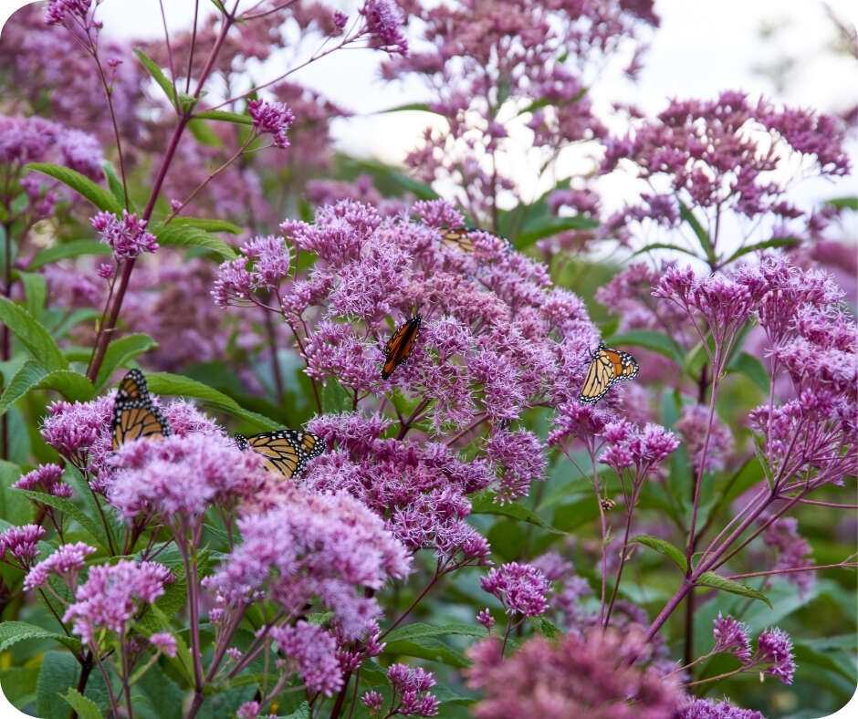 • Coneflowers, Bee Balm, and Joe-Pye Weed attract bees and butterflies.