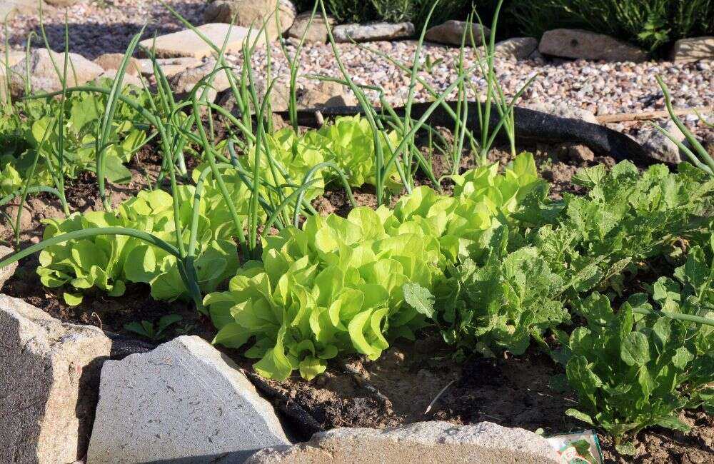 - 2×4 ft bed map: back row tomatoes on stakes, front row leaf lettuce. Slip scallions between tomato stakes. Mulch pathways. Harvest lettuce first, then reseed with basil to keep the understory working.