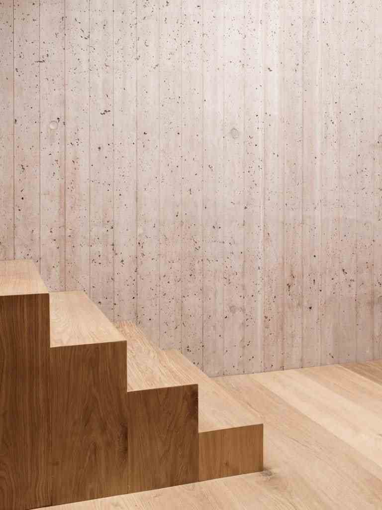 The starting point for the detached house is an existing building from the 60s, which was completely removed except for the underlying vaulted stone cellar. The new building is divided into two buildings: a rectangular cube with a pitched roof was placed over the stone cellar – an homage to the former building, which had stood here in the same orientation and similar cubature. The monolithic construction of colored insulation concrete, the structure of the sawn wooden board formwork and the few square openings give the building an introverted character.