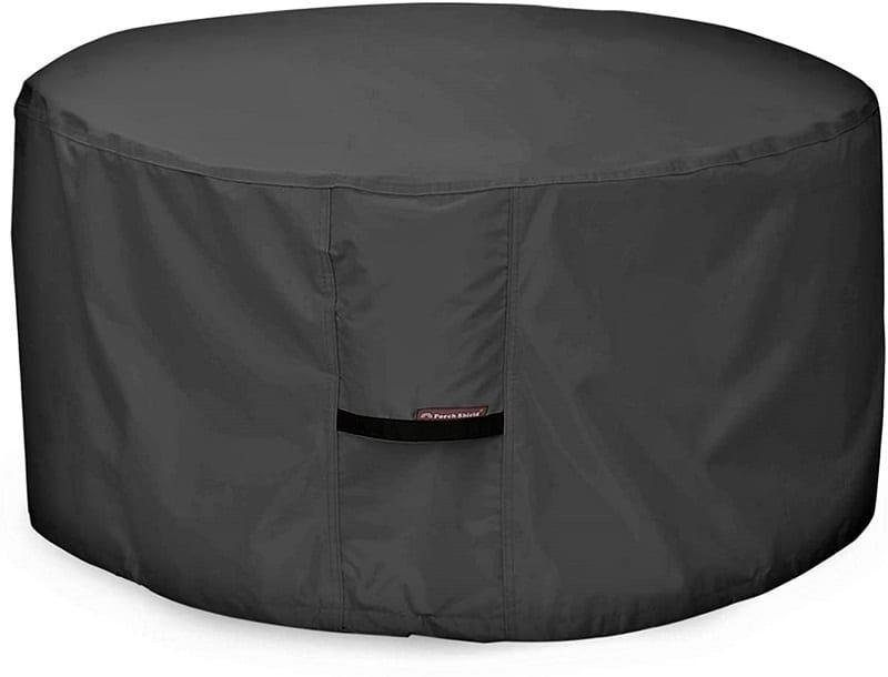 Porch Shield manufactures the cover in a range of sizes for both square and circular fire pits. Each comes with an elastic hem cord and straps for a secure fit.