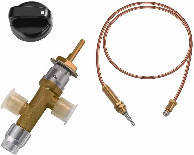The kit consists of a brass valve, a brass thermocouple, and a black plastic knob. We have been pleased with the purchase thus far.