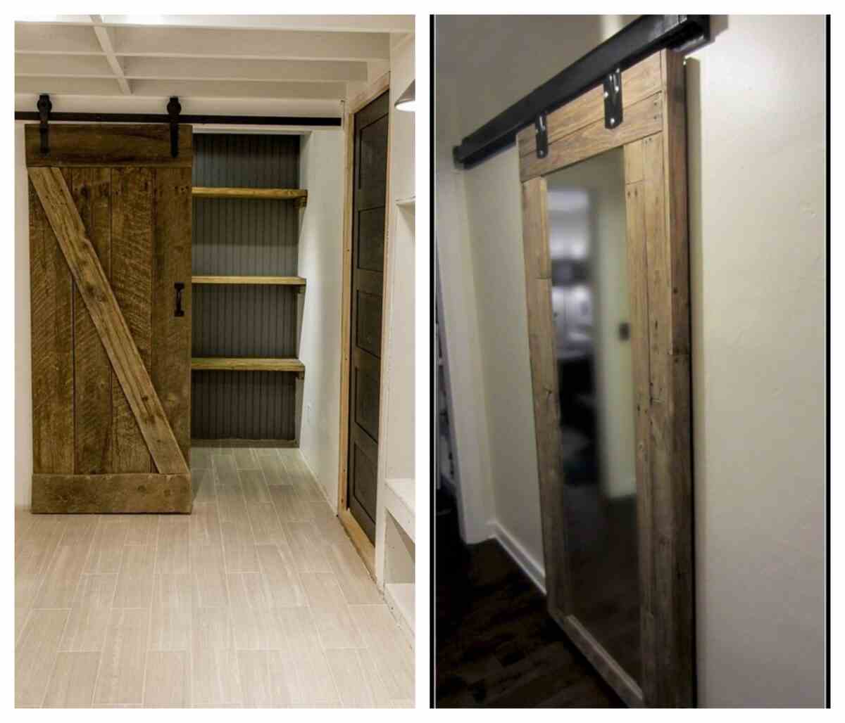 Sliding barn doors are great for rooms that usually need to be securely locked — laundry, storage, pantry, or even bathrooms located inside bedrooms. They are also nice as room dividers.