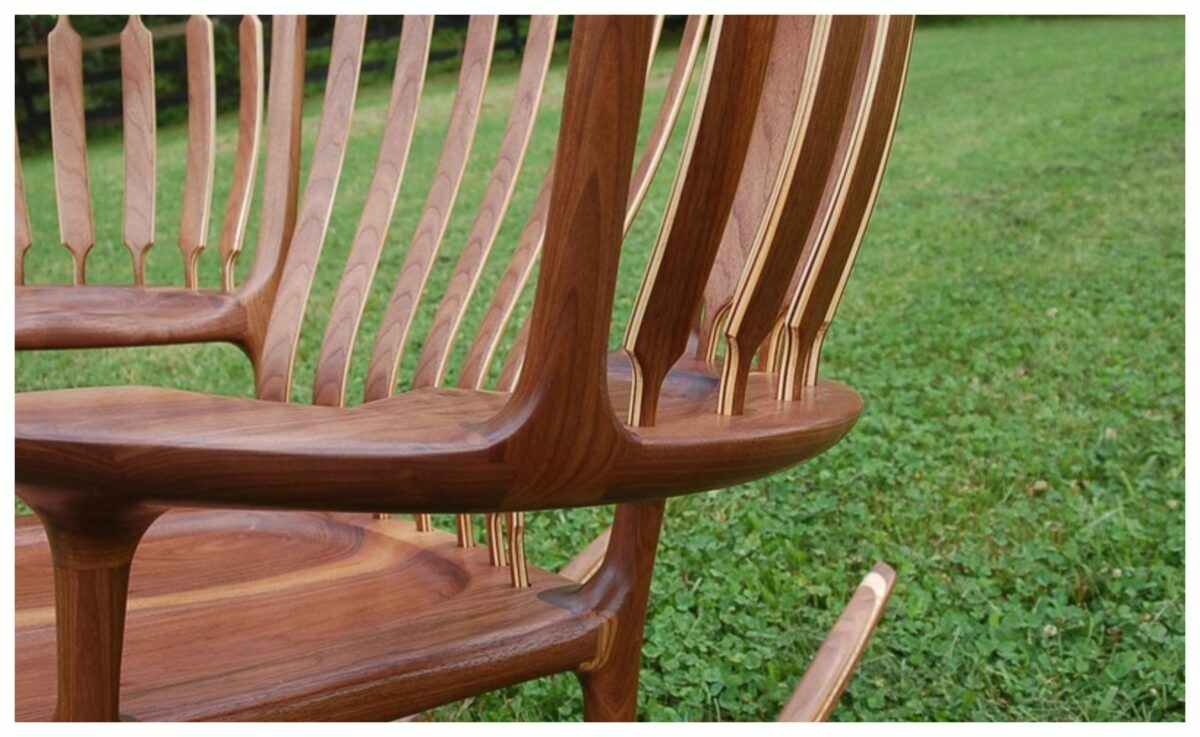 This rocking chair was made by Hal Taylor, a professional woodworker with years of experience. The chair is made from solid wood and is designed to last a lifetime.