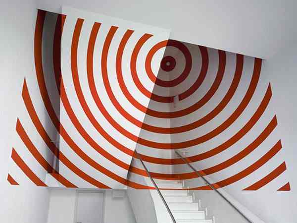 Varini’s work often explores the relationship between space and perception, and said that his goal is to “create an optical illusion that would modify the perception of the space.”