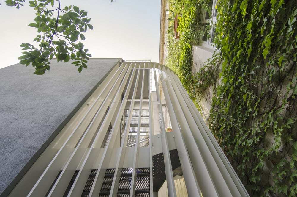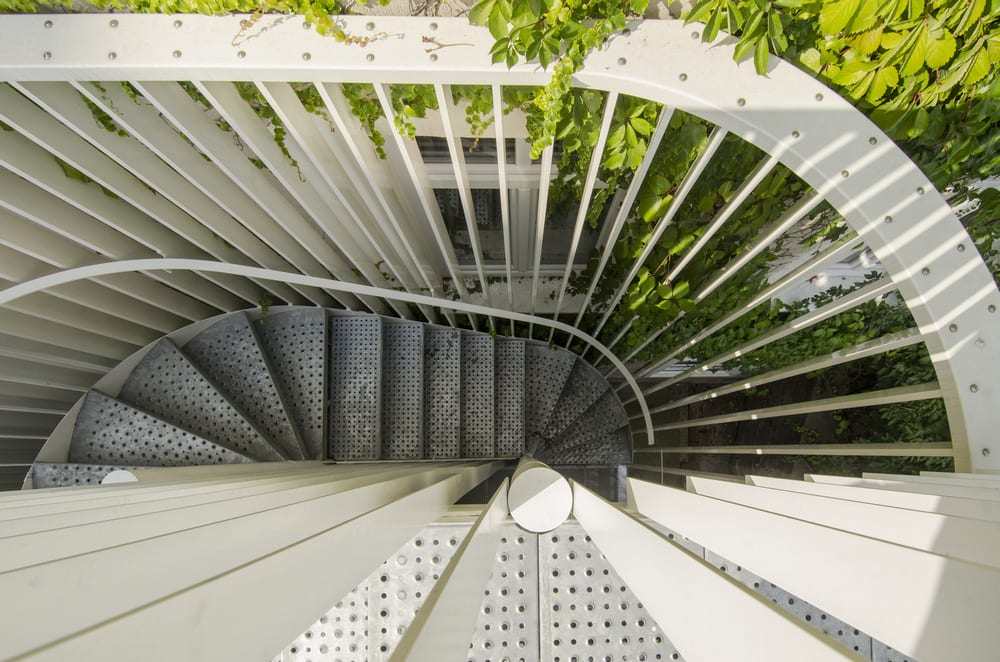 There’s a rooftop terrace that has stunning views of old and new museums. To keep prying eyes away, the structure is enclosed by rotating “fins,” making up the home’s façade. This rotating mechanism also transforms Kutscherhaus – from an open space to a private hideaway.