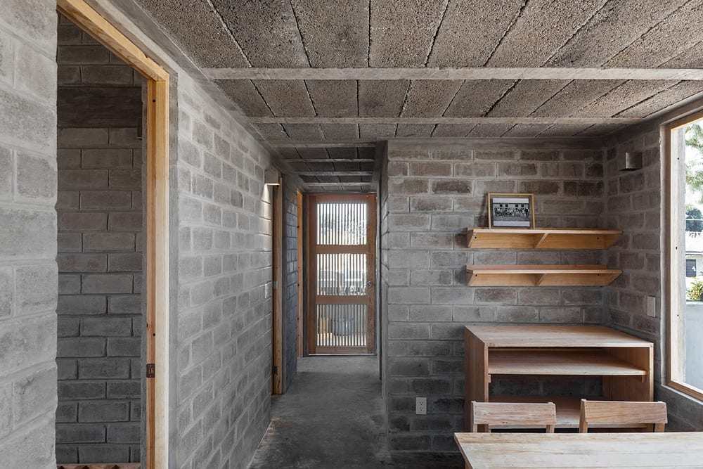 The house is made of monotonous grey concrete blocks. This continues to the inside, mixed with timber shelves, furniture, doors, and windows. Because of the nature of the project, the design for Casa Mulato resulted in a simple aesthetic. It’s a home that may be modest but it certainly doesn’t lack warmth.