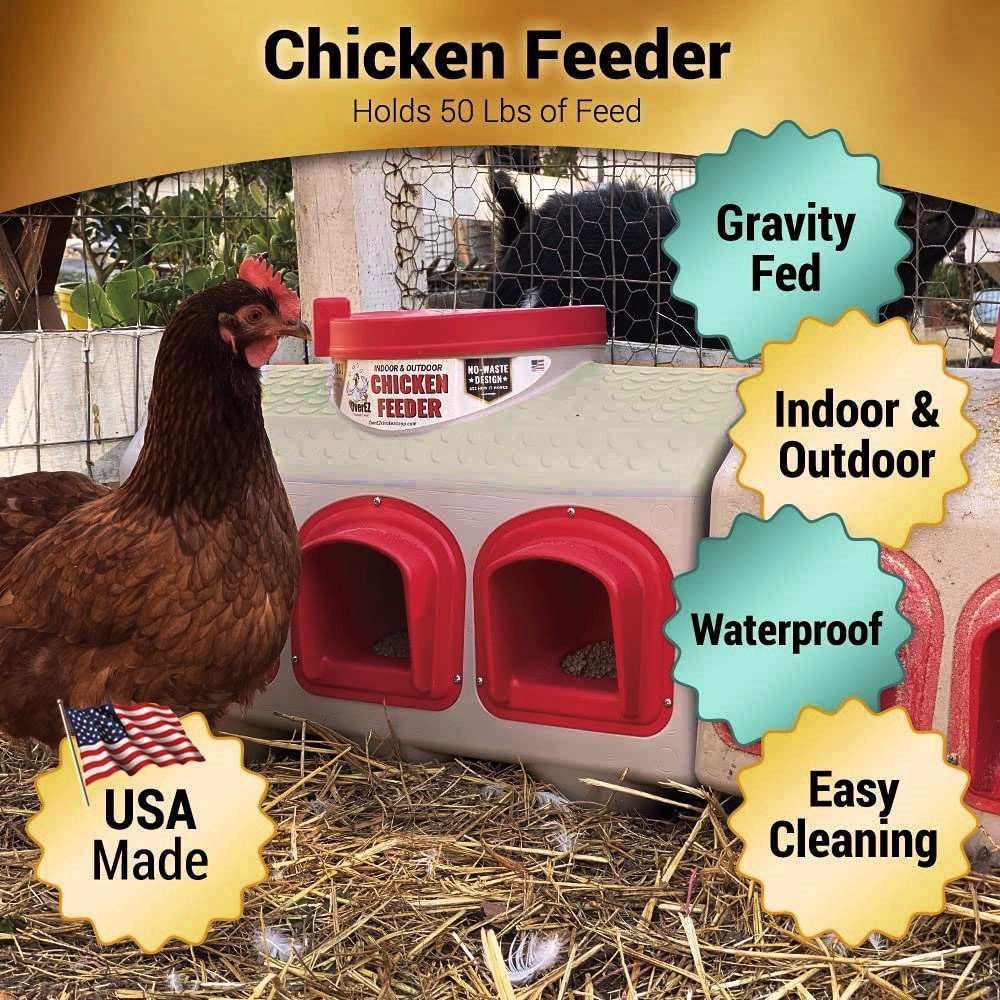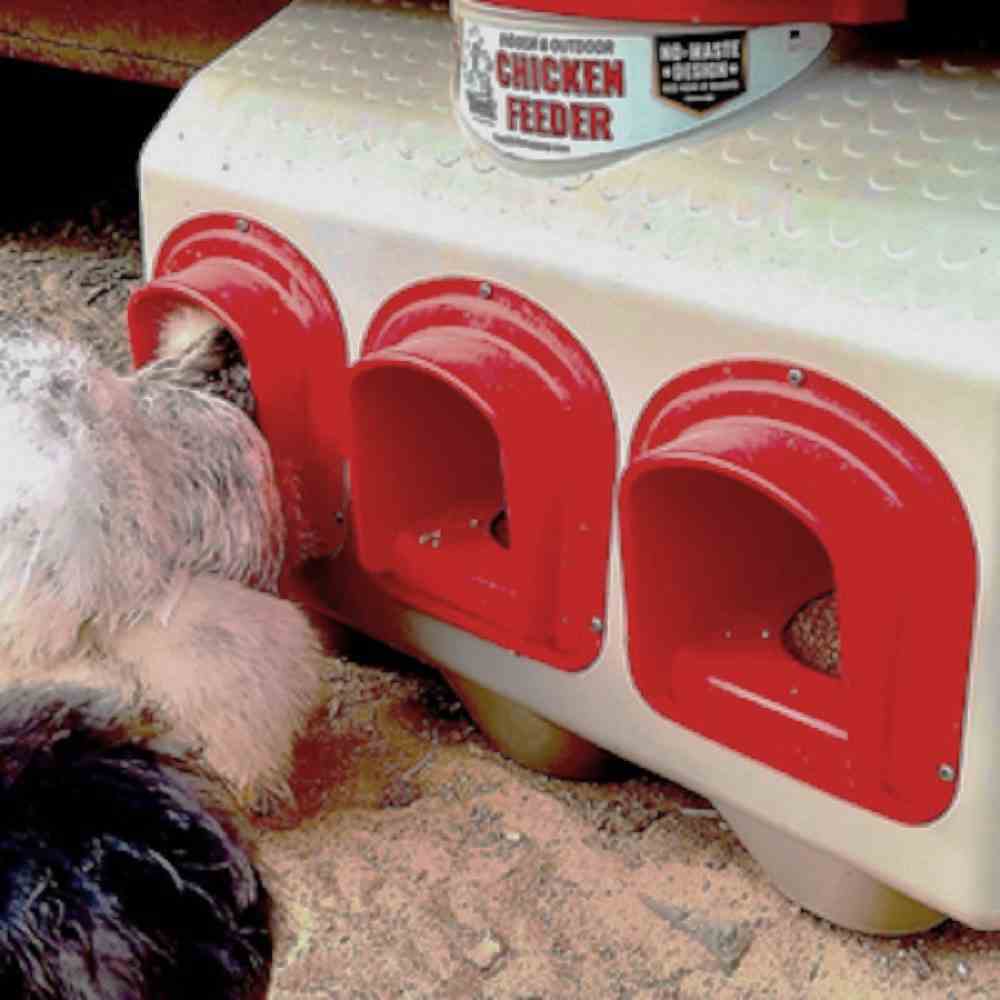 They have smart-feeding ports that prevent chickens from soiling or spilling feed, resulting in less wasted feed and a cleaner coop for your chickens.