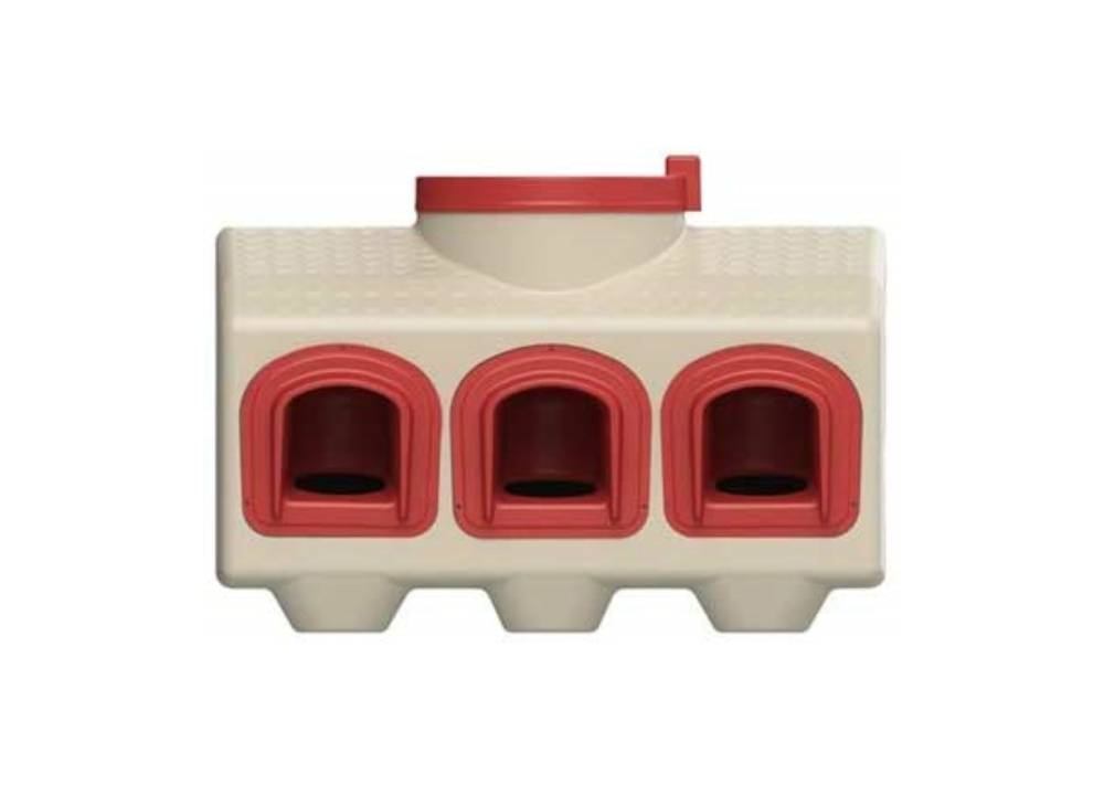 When it rains, the port overhang and concealed recessed channel keep runoff water from spilling into the feeder and contaminating significant volumes of feed for your chickens.