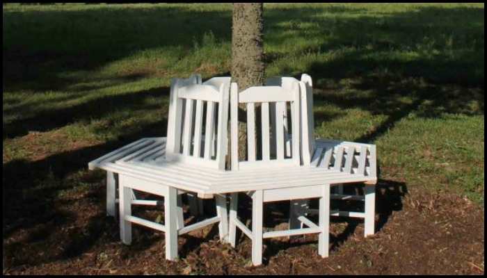 DIY Bench Around a Tree Using Old Kitchen Chairs