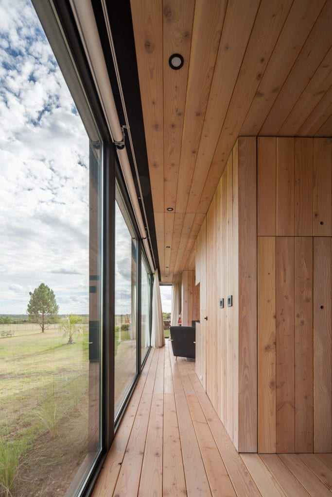 The interior measurements were defined by the width of the planks whose lines coincide in all the vertical and horizontal planes of the house. Obtaining a minimum waste of the planks, almost without cuts or adjustments and a homogeneous view of the space.