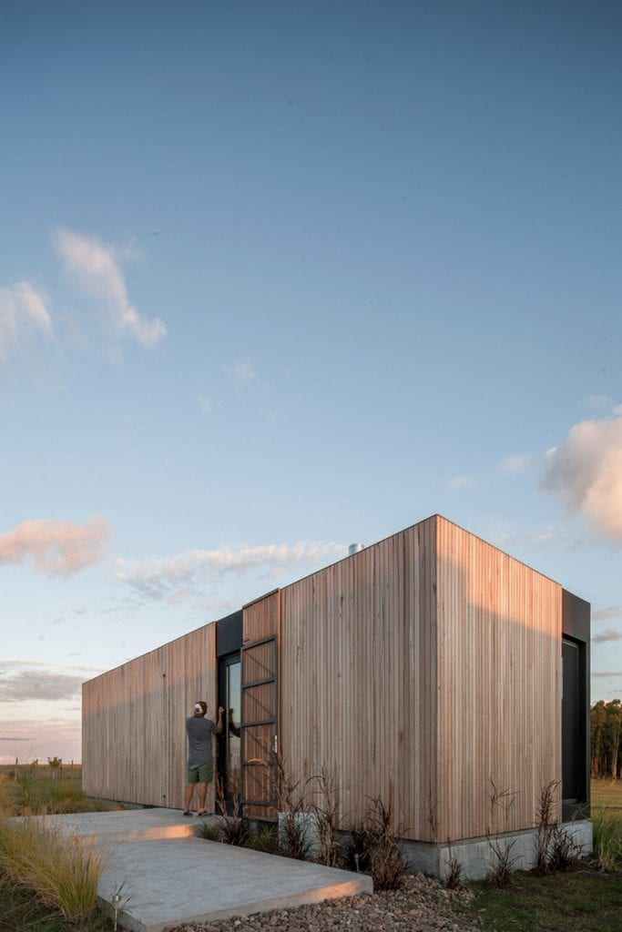 The construction of projects in remote sites or with limited access, often affect the natural state of the site, providing materials, control over the work done, among other things. The modular prefabricated construction helps to mitigate these factors, the house is built in a closed environment, away from climatic factors, close to all types of material supply and (usually) near the office or the client and then sent (by truck) to its final resting place semi permanent. Site whose intervention was minimal, where its natural state was minimally altered and thus maintain its natural essence. A grateful landscape.