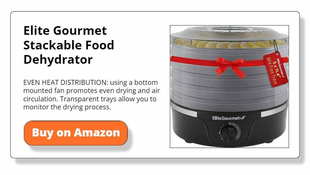 2. MOST COMPACT: Elite Gourmet Stackable Food Dehydrator 5 BPA-Free 11.4″ Trays