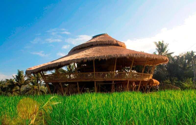 As a practical demonstration of these principles, they established the Green School, the Meranggi Foundation, which develops plantations of bamboo plants by presenting bamboo seedlings to local rice farmers, and PT Bambu, a design and construction company that promotes the use of bamboo as a primary building material. The Green School comprises some 75 buildings in total.